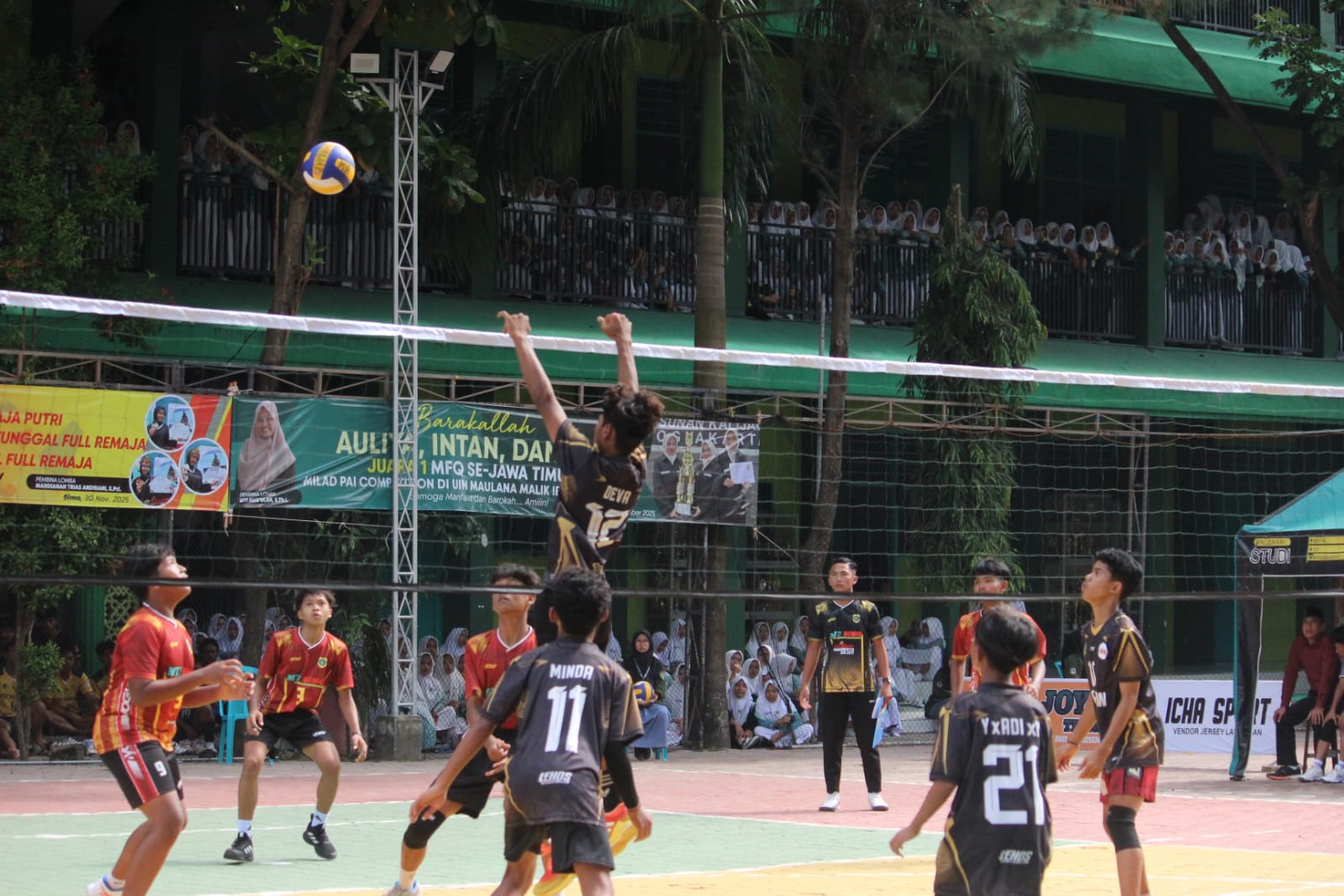 LAMONGAN – Gemuruh sorak sorai penonton memadati lapangan utama Madrasah Aliyah (MA) Matholi'ul Anwar Simo, Desa Sungelebak, Kecamatan Karanggeneng, Kabupaten Lamongan, pada Sabtu (31/1/2026). Pukul 08.00-11.00 WIB. Suasana kompetisi memuncak saat digelarnya babak final turnamen bola voli putra dalam ajang Porseni Smart Combat 2026. Turnamen bergengsi tingkat pelajar ini resmi ditutup dengan laga pamungkas yang mempertemukan MTs Putra Putri Simo melawan MTs Al Ihsan Tenggulun, dan MTs Darul Ma’arif melawan SMP Negeri 1 Mantup. Pertandingan berjalan alot dengan aksi saling berbalas smash keras dan pertahanan yang solid dari kedua kubu. Setelah melalui pertarungan 5 set yang melelahkan, tim MTs Putra Putri Simo akhirnya berhasil mengukuhkan diri sebagai champion. Kemenangan ini memastikan mereka membawa pulang trofi bergengsi Juara 1 Porseni Smart Combat 2026.